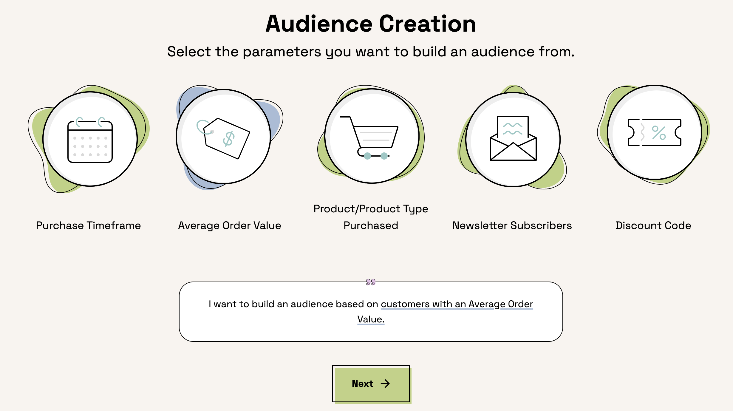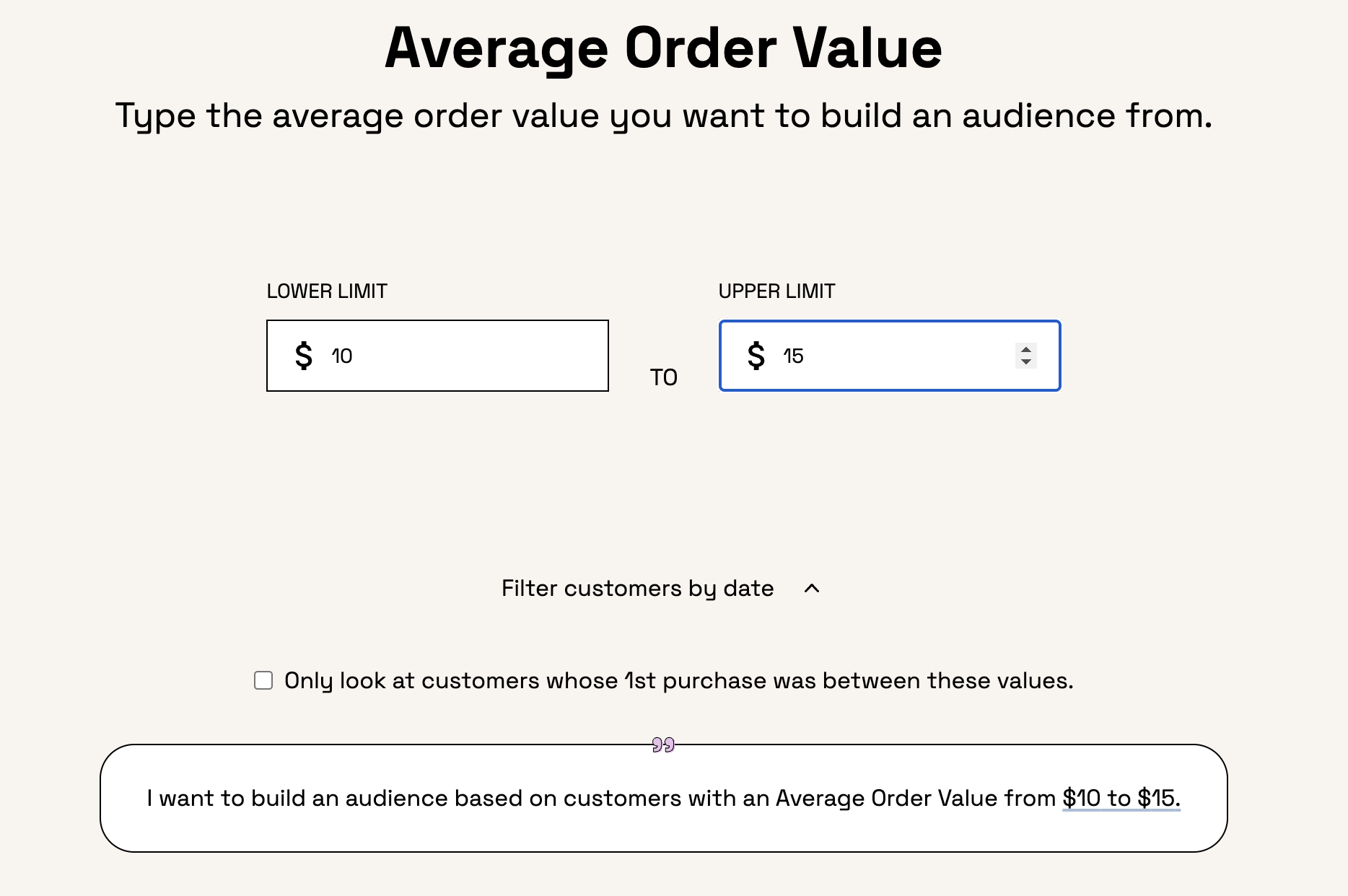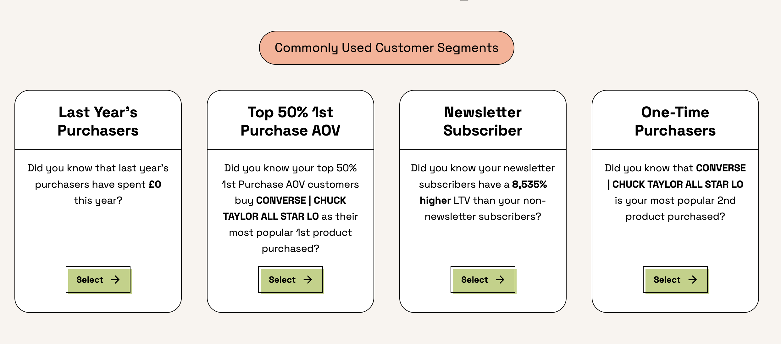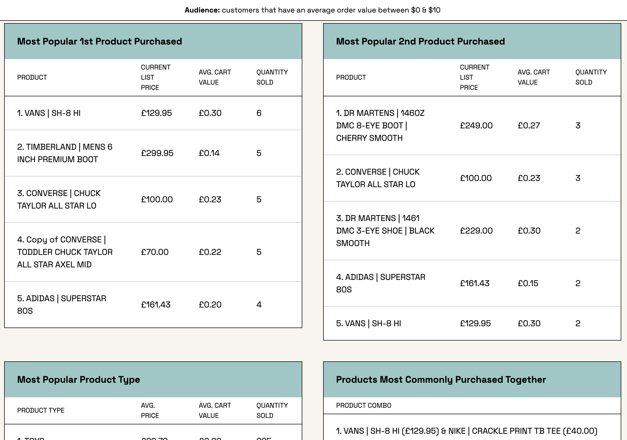 The user now has the ability to see how different groups of customers behave. For example, they could see how customers with a lower average order value (AOV) behave compared to customers with a higher AOV, then use this information to target these groups of customers in different ways.