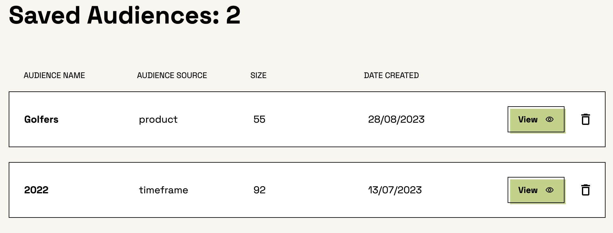 If the user finds themselves creating the same audience over and over, they can save the audience, allowing them to quickly view it from their saved audiences page
